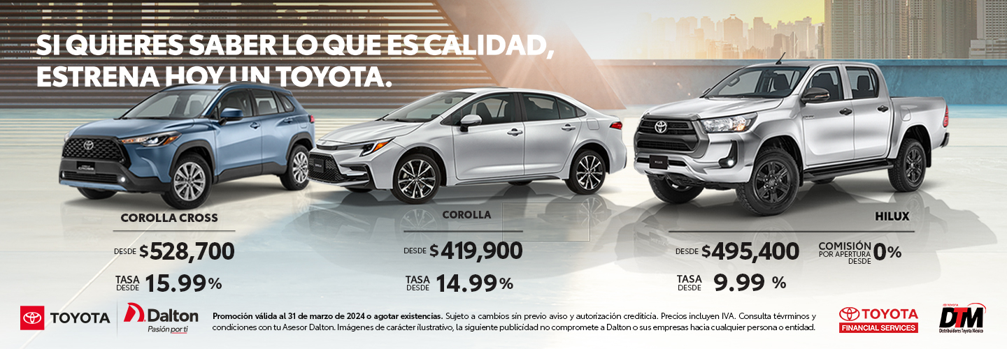 Ver ficha técnica > Contáctanos >Te presentamos los modelos más nuevos y emocionantes de Toyota México, desde deportivos, SUVs, elegantes sedanes, y Pickup’s Toyota. Con opciones de financiamiento hasta 60 meses!